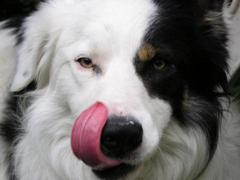 Hier ist unser Hund Lucky